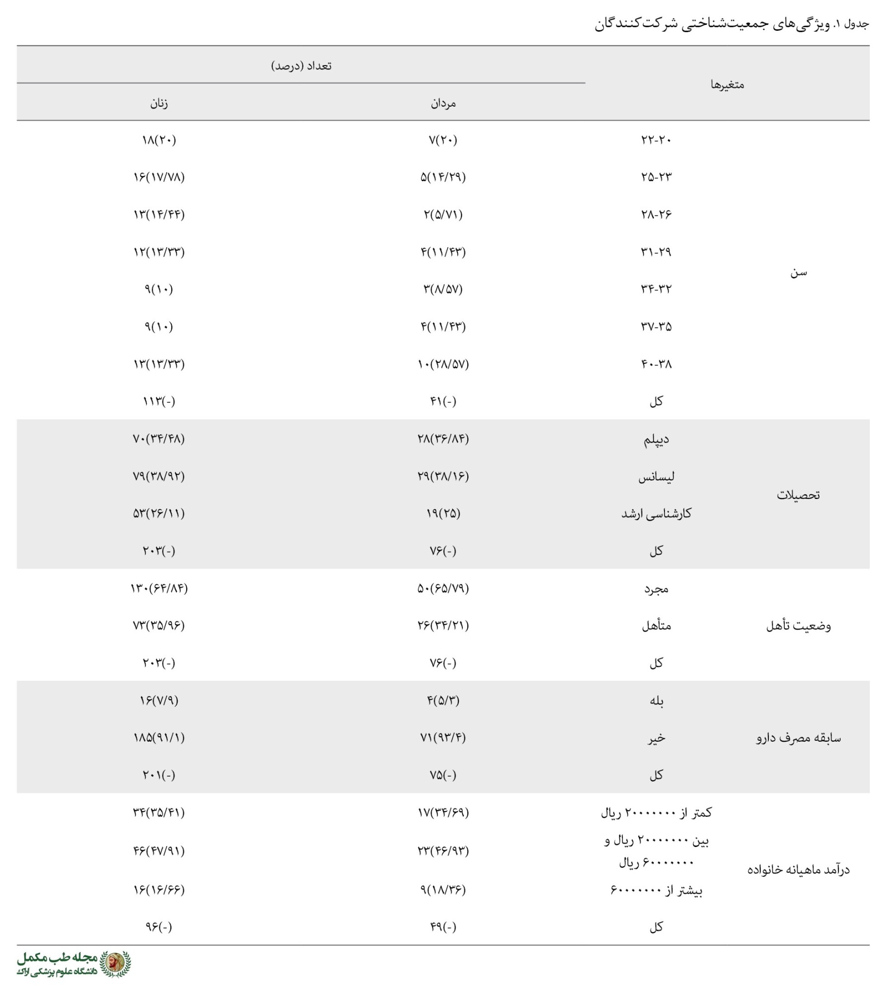 جدول شماره 1 نشاندهنده یافتههای حاصل از خصوصیات عمومی شرکتکنندگان است.